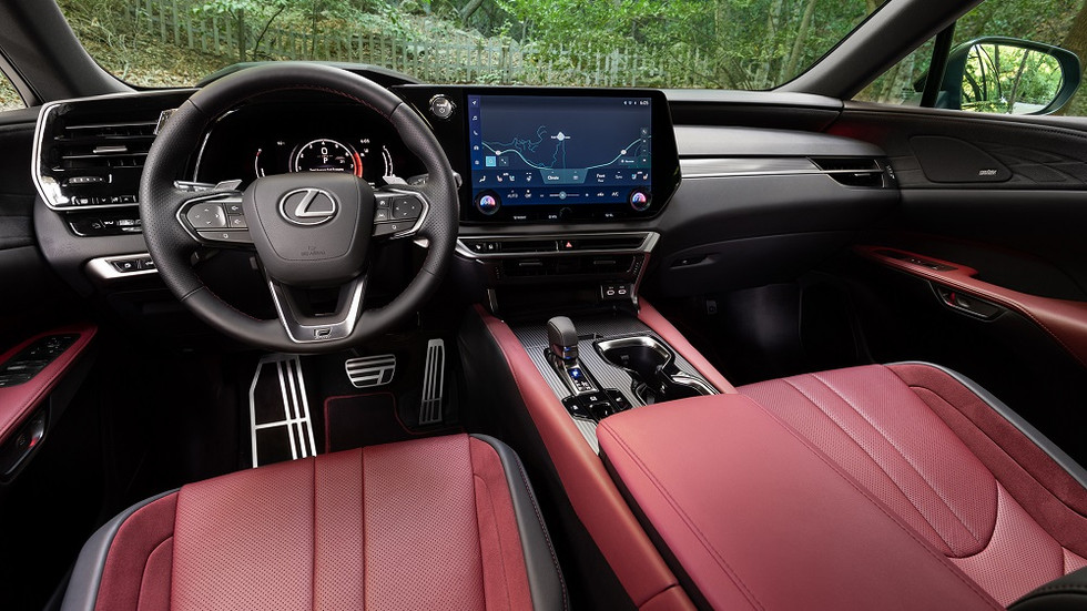 Pautado pelo princípio de Omotenashi da marca, termo em japonês que significa hospitalidade, o novo Lexus RX 500h foi desenvolvido de dentro para fora, ou seja, todos os comandos se mantêm em posição ergonômica, a fim de garantir uma condução confortável e segura. O design interior baseia-se no conceito Tazuna, centrado no ser humano, com assentos que permitem uma ligação mais profunda e intuitiva entre o automóvel e o condutor para uma dirigibilidade emocionante, em uma cabine espaçosa e confortável para os passageiros. Além disso, o cockpit foi desenvolvido para maximizar o prazer de dirigir. O acabamento de couro reveste o volante e a manopla de transmissão. O painel e console central, que obteve reposicionamento do câmbio automático e porta-objetos, inclui itens de alumínio que deixam o visual ainda mais sofisticado e esportivo, como as pedaleiras também feitas deste material. Carregador por indução para smartphones também está presente na versão.